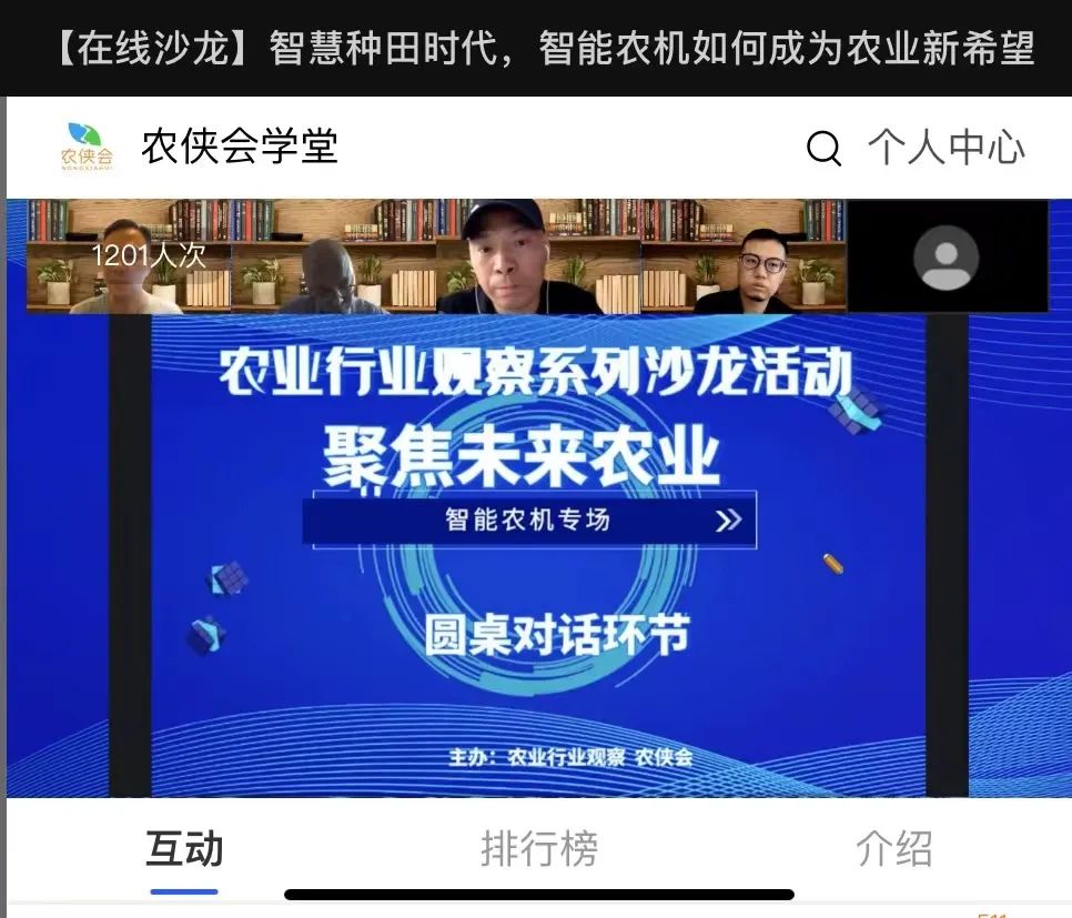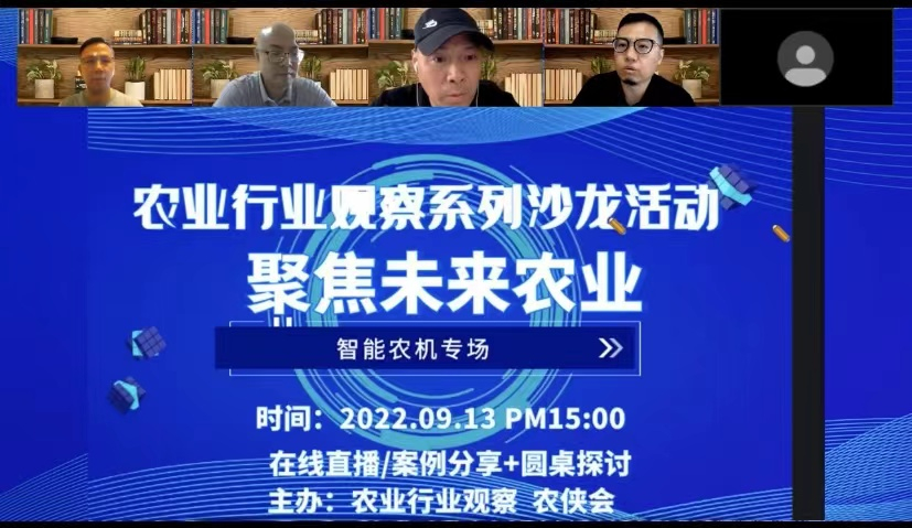 2022年9月13日下午15:00 農(nóng)業(yè)行業(yè)觀察、農(nóng)俠會(huì)牽頭組織“未來農(nóng)業(yè)”系列沙龍活動(dòng)成功帷幕,吸引了來自農(nóng)機(jī)、農(nóng)資、種植類、智慧農(nóng)業(yè)公司、政府、資本方等1000多人在線參與。本次活動(dòng)是“智能農(nóng)機(jī)”專場(chǎng),主辦方還邀請(qǐng)了山東超星智能科技有限公司(簡(jiǎn)稱:超星智能)總經(jīng)理/安華明、北京博創(chuàng)聯(lián)動(dòng)科技有限公司(簡(jiǎn)稱:博創(chuàng)聯(lián)動(dòng))市場(chǎng)副總裁/楊子、北航投資(大慶)科創(chuàng)負(fù)責(zé)人陳春利、農(nóng)業(yè)行業(yè)觀察創(chuàng)始人李劍、農(nóng)業(yè)行業(yè)觀察聯(lián)合創(chuàng)始人南風(fēng)共同探討未來智能農(nóng)機(jī)發(fā)展趨勢(shì)及商業(yè)化落地應(yīng)用。