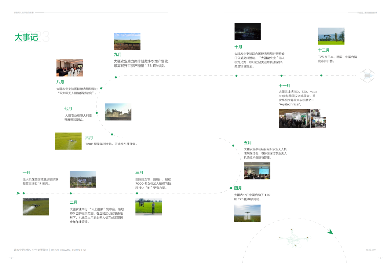 近日,大疆農(nóng)業(yè)發(fā)布《農(nóng)業(yè)無人機(jī)行業(yè)白皮書(2023)》,以全球視角記載2023年農(nóng)業(yè)無人機(jī)行業(yè)最新發(fā)展動態(tài)、多國政府的支持政策,以及因科技生產(chǎn)力提升、帶來的農(nóng)業(yè)無人機(jī)的新興場景應(yīng)用。