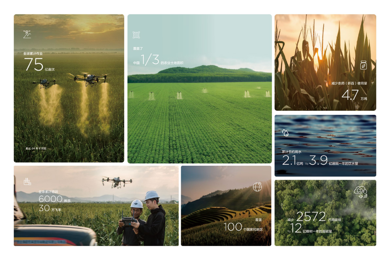 該《農(nóng)業(yè)無人機(jī)行業(yè)白皮書2023》數(shù)據(jù)顯示,截至2024年6月,大疆農(nóng)業(yè)的無人機(jī)保有量已超30萬臺,全球累計作業(yè)面積突破75億畝次,覆蓋中國1/3的農(nóng)業(yè)土地面積,累計培訓(xùn)6000名農(nóng)業(yè)無人機(jī)教員,累計培訓(xùn)30萬農(nóng)業(yè)無人機(jī)飛手,惠及數(shù)億農(nóng)業(yè)從業(yè)者。