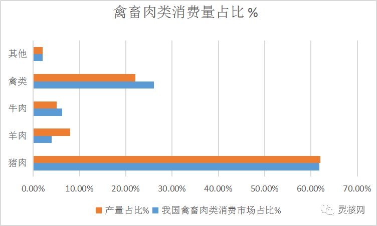 中國(guó)禽畜肉類生產(chǎn)量及消費(fèi)占比