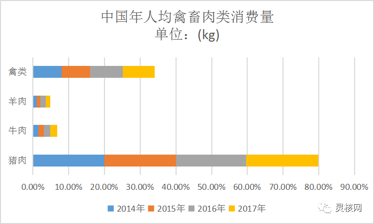 中國(guó)禽畜肉類人均年消費(fèi)量(kg)