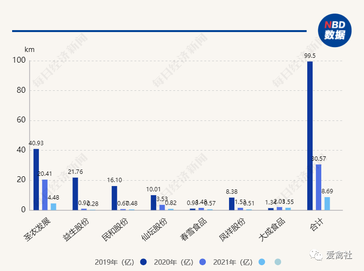 從2021年的業(yè)績來看,算上新晉上市的鳳祥股份、大成食品、春雪食品,7家白羽雞概念公司,去年的盈利總額只有8.69億元,不足2020年的30.57億元的三分之一,甚至不足2019年(7家公司共計(jì)99.5億元)的零頭。