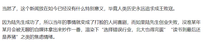 有人認為北大畢業的陸步軒去養豬是降維打擊,行業的界限越來越模糊;