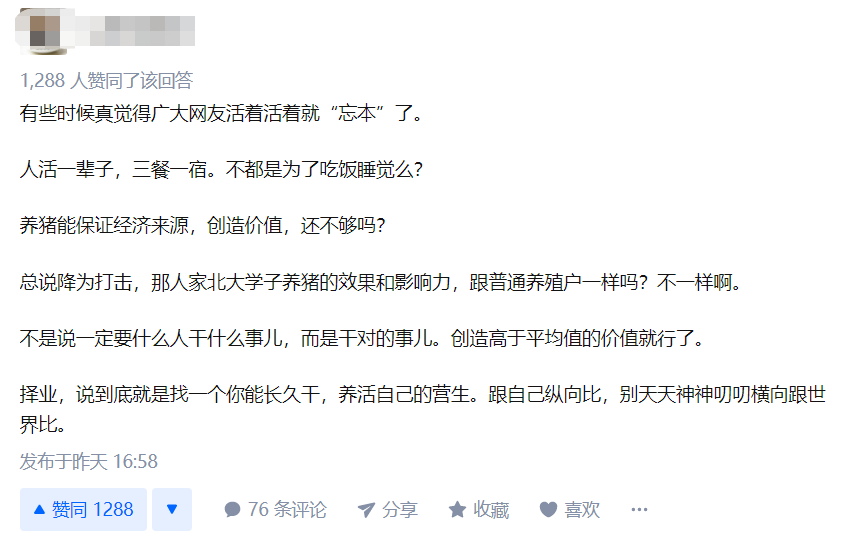 面對“北大才子養豬”的話題,相比于20多年前的人們的反應,現在大家要理性的多。