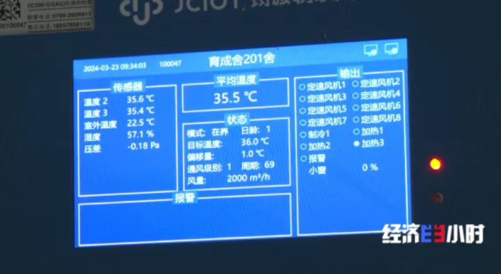 在廣東新興縣的一家智慧養殖小區,種植戶余贊文剛買的竹絲雞雞苗進場了。進場之前,他就已經通過智能控制系統調高了雞舍的溫度到36度左右。