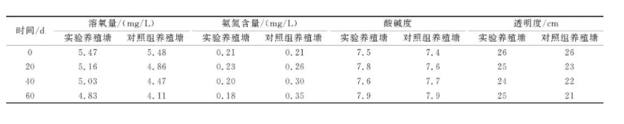 表1 魚菜共生養(yǎng)殖塘與對照組養(yǎng)殖塘水質(zhì)監(jiān)測結(jié)果對比