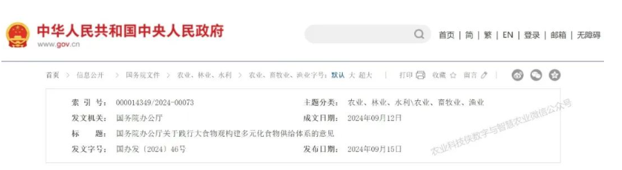 國(guó)務(wù)院辦公廳關(guān)于踐行大食物觀構(gòu)建多元化食物供給體系的意見(jiàn)