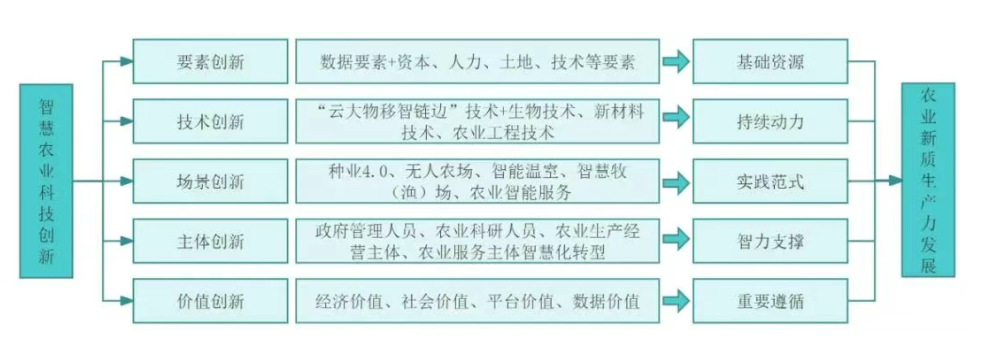 智慧農業科技創新通過賦能農業要素創新、技術創新、場景創新、主體創新與價值創新,推動農業新質生產力發展。