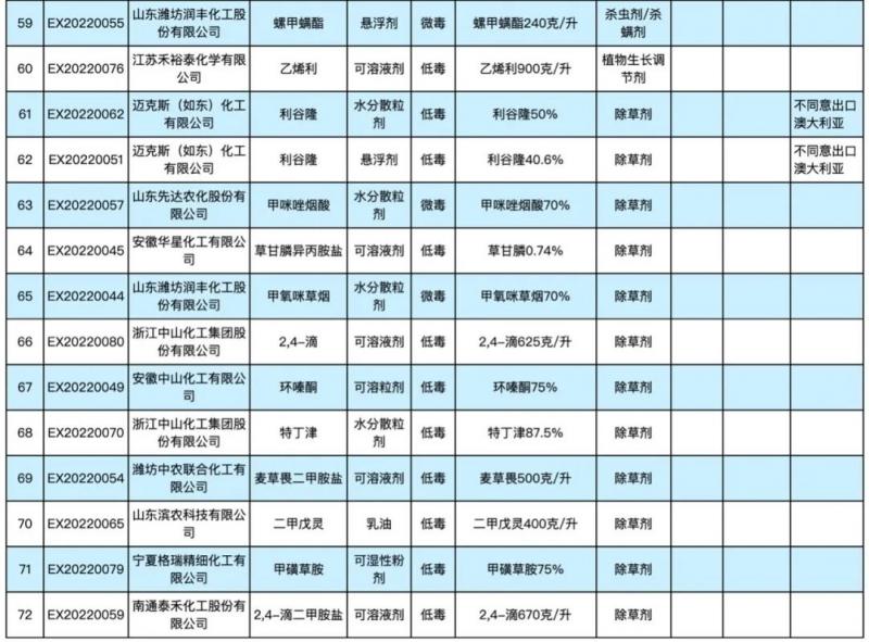 72個(gè)非新農(nóng)藥產(chǎn)品登記