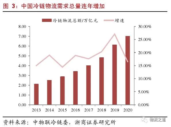 隨著消費(fèi)水平不斷提升,冷鏈物流行業(yè)呈增長(zhǎng)大勢(shì),特別是經(jīng)歷新冠肺炎疫情后,冷鏈作為重要的運(yùn)載保存方式,受到政府及市場(chǎng)的極大重視,一定程度上新冠疫情對(duì)冷鏈產(chǎn)業(yè)發(fā)展打了一劑“催化劑”。