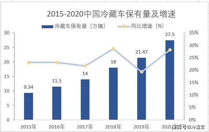 至2020年中國(guó)冷庫(kù)總量約為6665萬(wàn)噸,同比增長(zhǎng)10.11%。自2020年3月發(fā)改委發(fā)布的《關(guān)于首批國(guó)家骨干冷鏈物流基地建設(shè)工作的通知》,冷庫(kù)建設(shè)政策利好明顯,冷鏈?zhǔn)袌?chǎng)迎來(lái)風(fēng)口紅利,行業(yè)內(nèi)一片景氣。預(yù)計(jì)到2021年及未來(lái)冷庫(kù)的總量仍將保持喜人的增勢(shì),增速預(yù)計(jì)將超過(guò)15%。冷藏車作為冷鏈物流運(yùn)輸?shù)闹匾ぞ撸晔袌?chǎng)保有量也一直逐年攀升,根據(jù)中物聯(lián)冷鏈委數(shù)據(jù),2020年我國(guó)冷藏車市場(chǎng)保有量達(dá)到27.5萬(wàn)輛,比2019年的21.47萬(wàn)輛增長(zhǎng)28.1%。2020年市場(chǎng)保有量及同比增量均刷新歷史記錄。