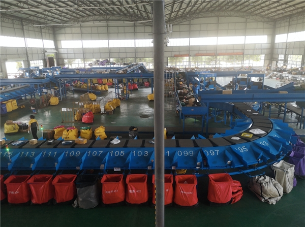 在這個(gè)共配中心有164個(gè)快遞檔口,每天能夠處理65000個(gè)包裹,集中了中通、韻達(dá)、申通、圓通等四家的快遞公司,可以做到讓不同快遞公司的包裹在同一條自動(dòng)線分揀上進(jìn)行“混揀”,從而實(shí)現(xiàn)集約化配送,做到當(dāng)天的包裹、當(dāng)天分撥、當(dāng)天送達(dá)。這在過去是很難做到的,但在這里做到了。同時(shí),多條線路的快遞通過“一倉一線”,即卸貨、入庫、分揀來實(shí)現(xiàn)集約化的管理,從而大幅度地降低了成本、提高了效率。