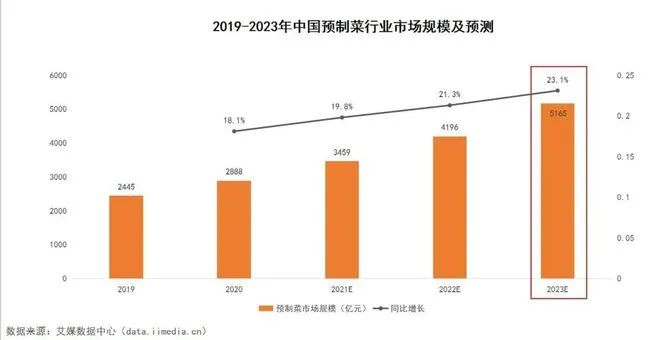 張煌認為預制菜發展前景廣闊。他預計預制菜未來的市場規模在5—6萬億元,而如今規模還不足0.3萬億元。同樣,艾媒咨詢給出的數據同樣不是小數字,艾媒咨詢預測,2022年中國預制菜市場規模將達0.4196萬億元,將同比增長21.3%。