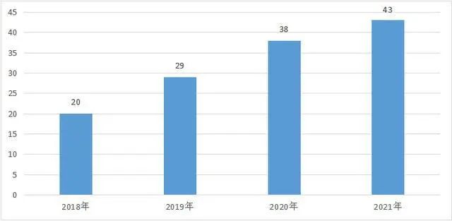 圖2 2017-2021年國(guó)家現(xiàn)代農(nóng)業(yè)產(chǎn)業(yè)園認(rèn)定數(shù)量