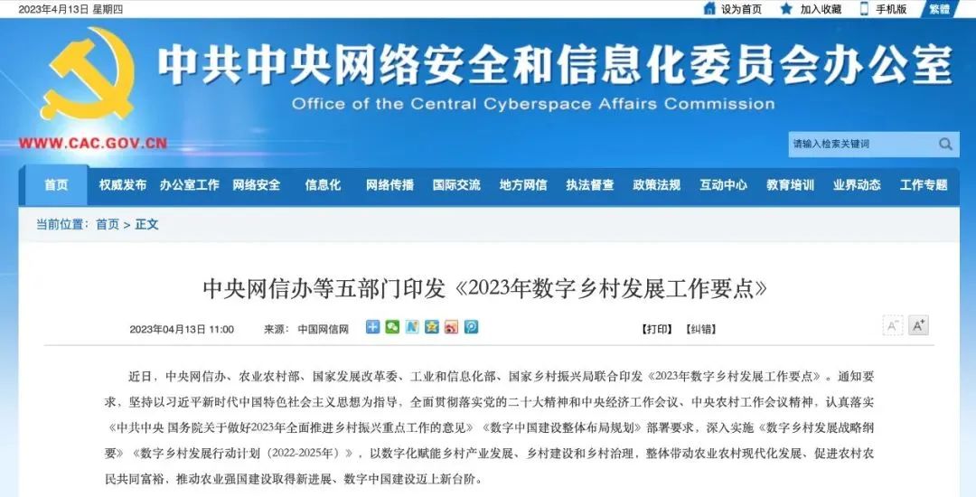 2023年數字鄉村發展工作要點