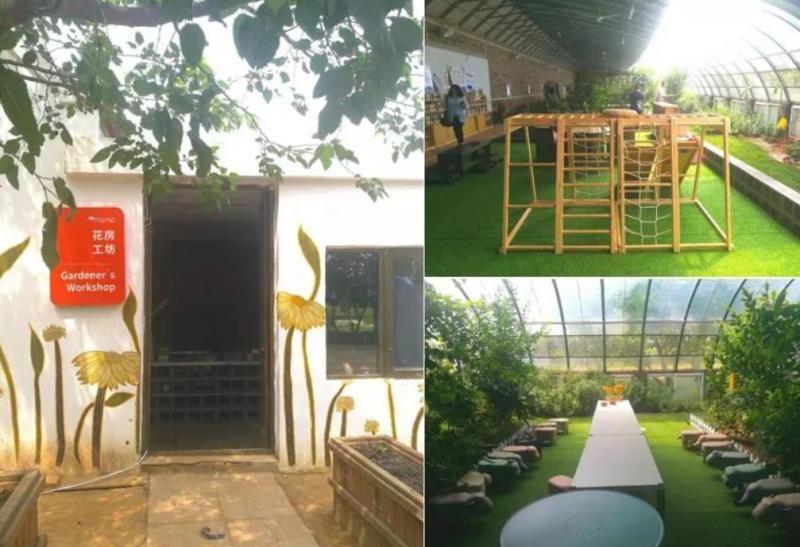 花房依托大棚而打造,內部種植有許多珍貴植物,如多肉、花卉等,既可以觀賞展示、園藝產品售賣,又可以作為喝茶、聊天的休閑娛樂空間,同時也是一個可以開展親子手工和拓展研學活動的空間場所。