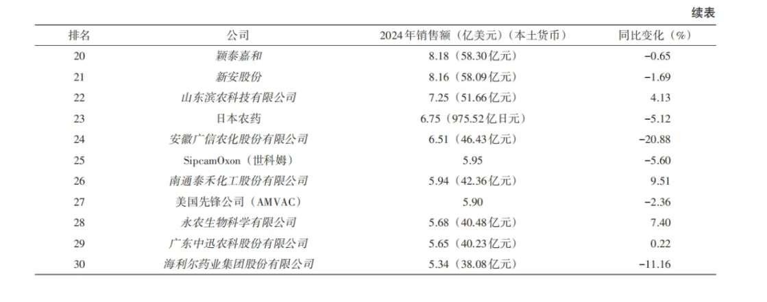 表2  全球植保行業30強,中國軍團穩占19席