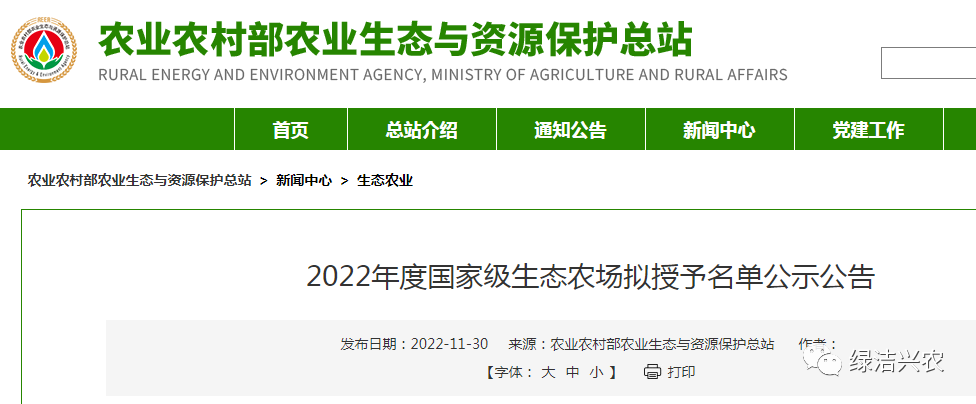 【政策解讀】《2022年度國家級生態農場擬授予名單》公布
