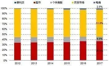 超市、電商渠道替代農貿市場趨勢明顯