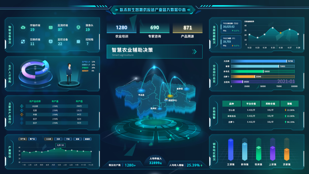 因此,為解決其中的弊端,中農大數據平臺攜手下屬各運營項目及農產品供應鏈共享倉平臺——聯禾鮮生,一起共創農副產品集中采購、 助力商家拓寬銷路、食安溯源數據監管、精準把握食品安全等的創新型產業鏈供應。
