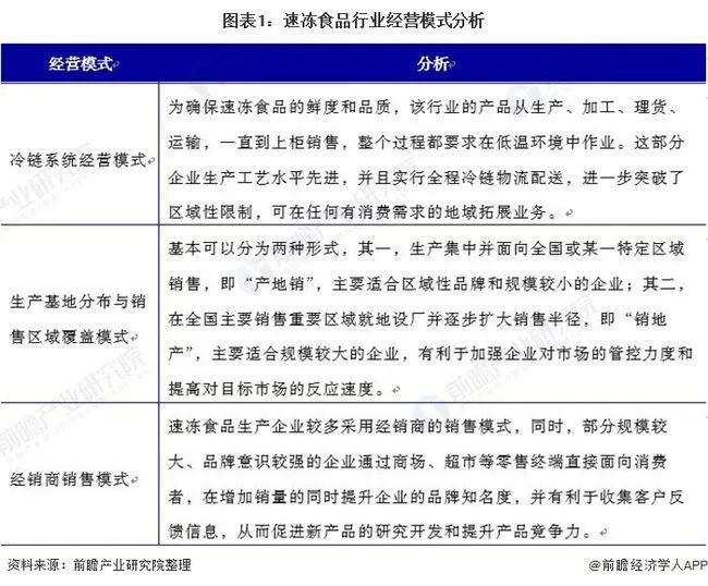 速凍食品行業經營主要有冷鏈系統經營、生產基地分布與銷售區域覆蓋、經銷商銷售等模式。其中,冷鏈系統經營模式對運輸成本及過程損耗要求較高,企業需具備包含速凍食品生產、貯藏、運輸、銷售和消費環節的完整冷鏈。