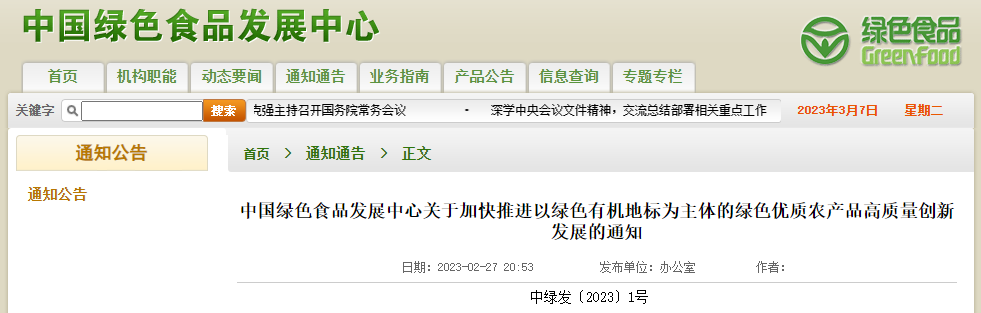 近日,中國綠色食品發展中心發布關于加快推進以綠色有機地標為主體的綠色優質農產品高質量創新發展的通知(以下簡稱《通知》)。
