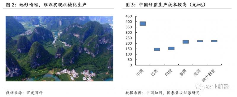 【圖】和國際相比,中國甘蔗生產成本較高(圖片來源:國君證券)