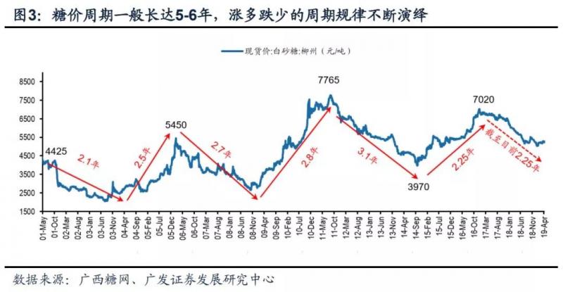 【圖】糖價周期長達5~6年,且漲多跌少(圖片來源:廣西糖網、廣發證券)
