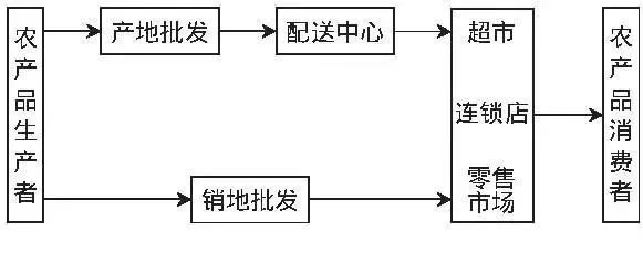 這一渠道為:農產品生產者→產地批發市場→各級中間批發商→銷地批發市場→銷地零售市場→農產品消費者。由于其信息不對稱、地區市場封鎖、交通運輸不便或不暢甚至支付手段落后等,導致產品流通環節增多。