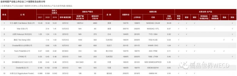 [ 導讀 ] 2021年全球雞蛋產業鏈上市企業二十強榜單。