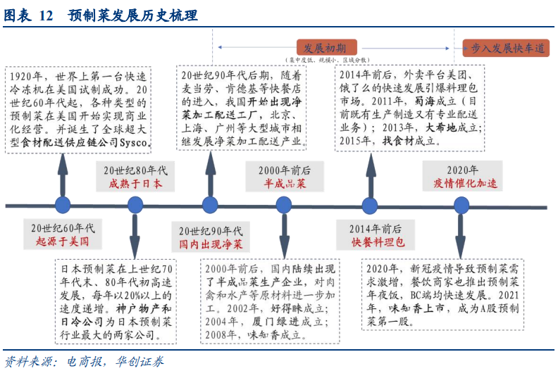 預(yù)制菜最早起源于美國,20世紀60年代開始實現(xiàn)商業(yè)化經(jīng)營。