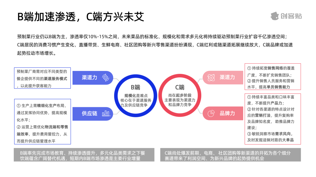 近年來,在B端和C端的聯合共振下,預制菜迎來了大爆發,同時也遇到了一些難題:在B端市場,企業需要不斷夯實供應鏈壁壘,不斷提高競爭化;而在C端市場,預制菜企業則要不斷更新口味鎖鮮技術、操作難度和配送服務等方面,改善消費者的預制菜體驗。