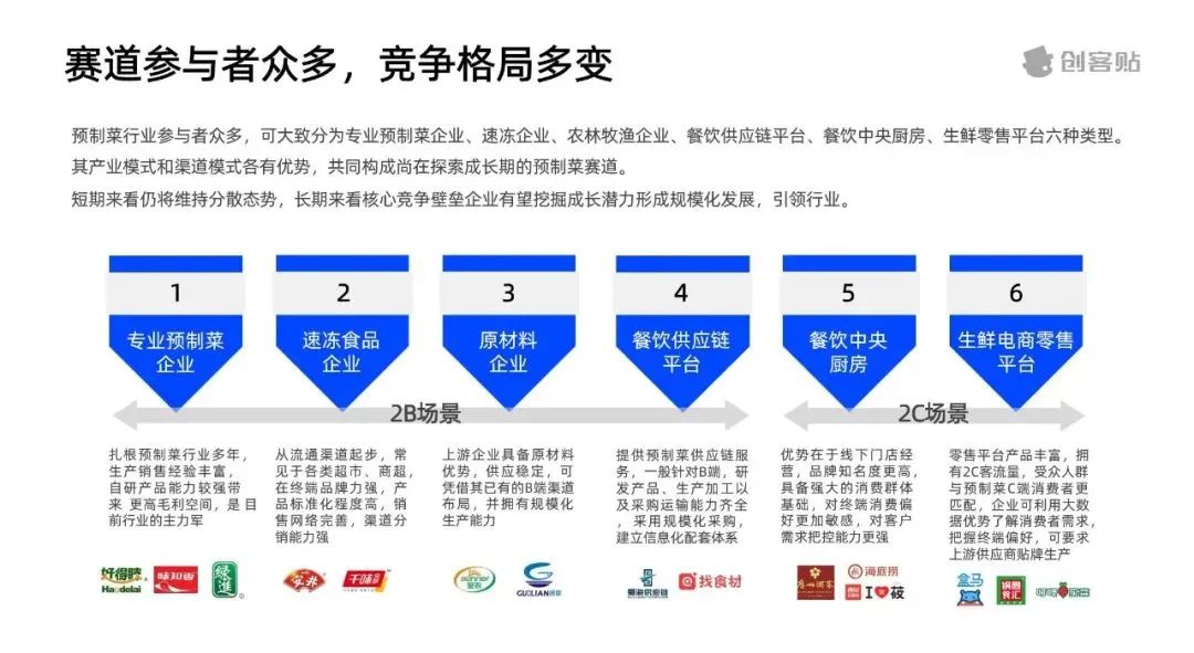 不同的企業在布局預制菜賽道時也往往有著不同的打法。比如類似三全食品的速凍食品企業,它們的主要產品是即烹食品,往往過于依賴競爭激烈的零售端,且產品定制化開發能力偏弱,但利用產能、渠道、冷鏈基礎設施等優勢也取得了消費者青睞。