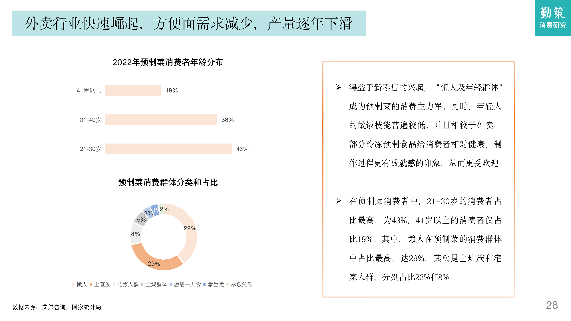 隨著外賣行業的快速崛起,方便面需求逐漸減少,產量也在逐年下滑。外賣行業的興起給了消費者更多選擇,而方便面在方便快捷程度上與預制菜存在一定的競爭關系。