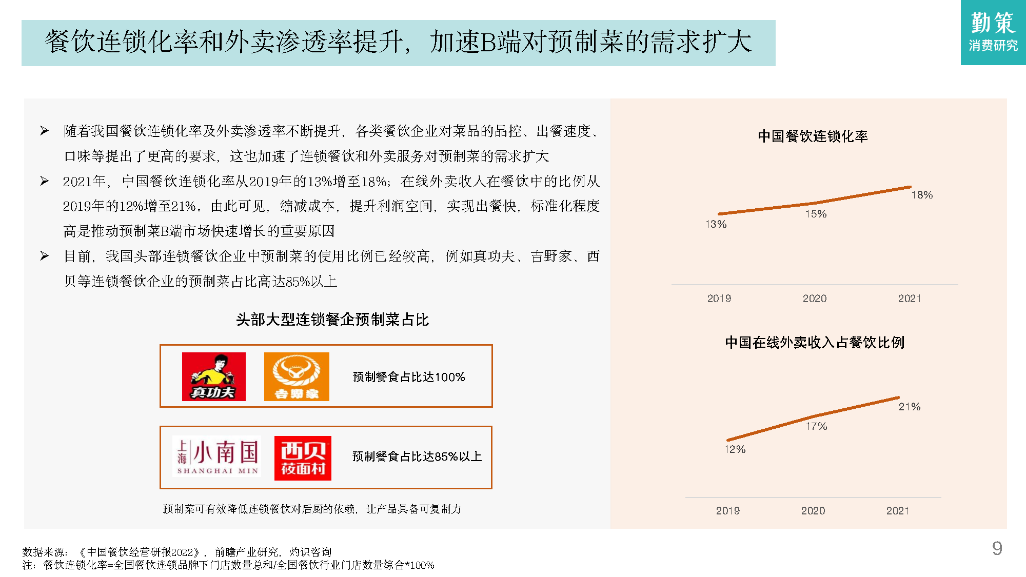 報告顯示,由于小型連鎖餐飲企業在市場上的占比不斷提高,預制菜成為了經濟實惠的首選。這些企業通過采購預制菜降低成本,提高效率,進一步擴大了預制菜的市場規模。