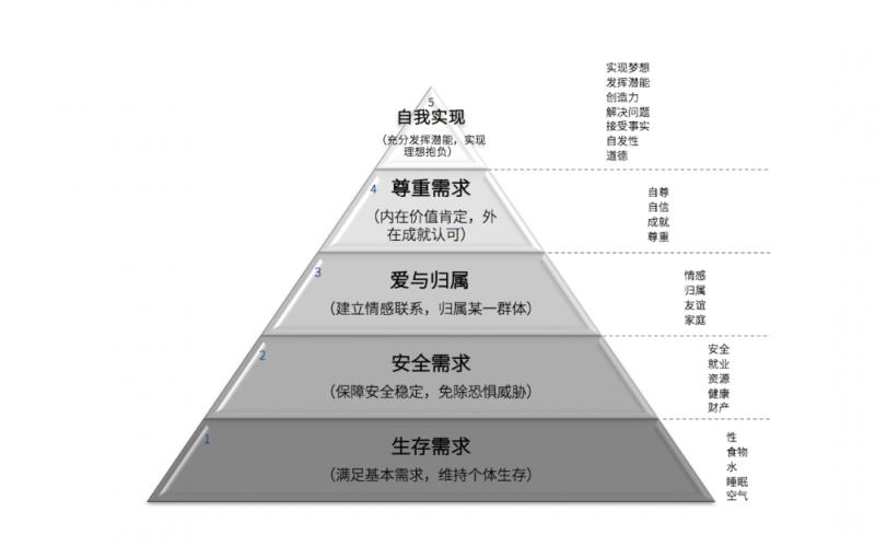 馬斯洛從人類動機的角度提出需求層次理論,該理論強調人的動機是由人的需求決定的。需求層次分為5個等級,是由低到高形成并得到滿足。而且人在每一時期,都會有一種需求占主導地位,而其他需求處于從屬地位。
