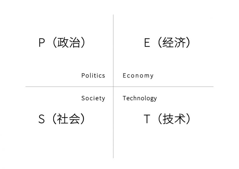 政治因素,有政治制度、政府政策、國家的產業政策、相關法律及法規等;經濟因素,有經濟發展水平、規模、增長率、政府收支、通貨膨脹率等;社會因素,有人口、價值觀念、道德水平等;技術因素,有高新技術、工藝技術和基礎研究的突破性進展。