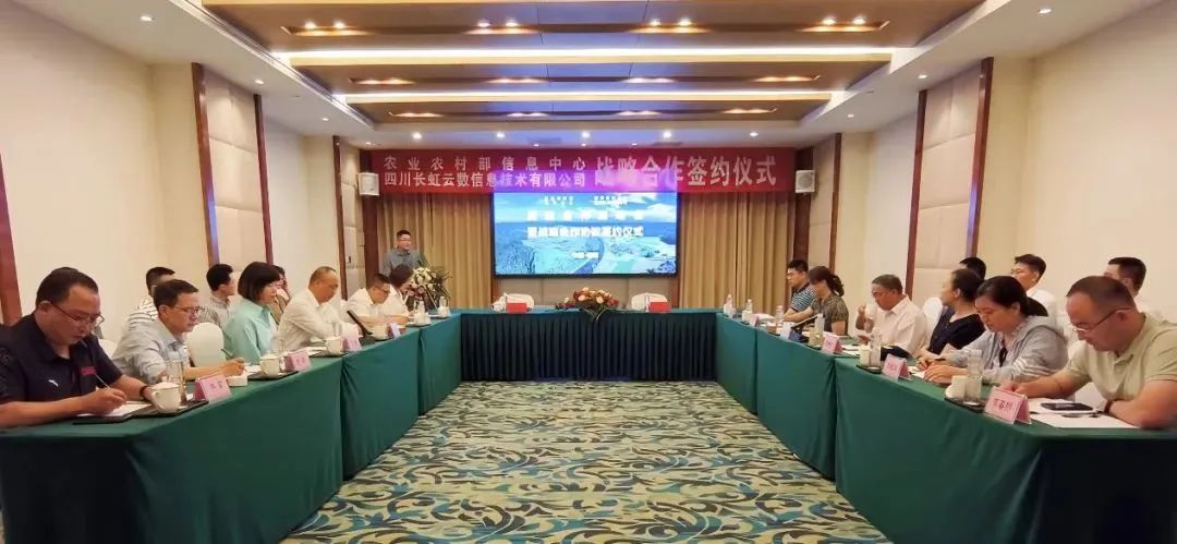 7月16日,農業農村部信息中心與四川長虹云數信息技術有限公司《智慧農業戰略合作協議》簽約儀式在綿陽舉行。農業農村部信息中心主任王小兵和長虹云數總經理鄢明代表雙方簽約。