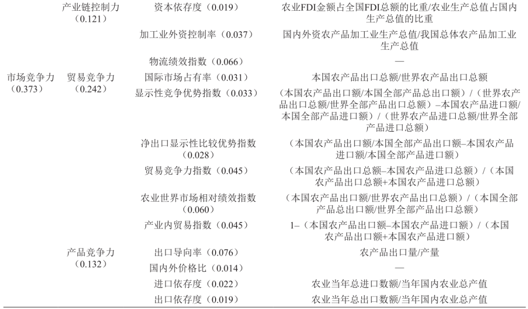 表 1 農業產業競爭力評價指標及其權重