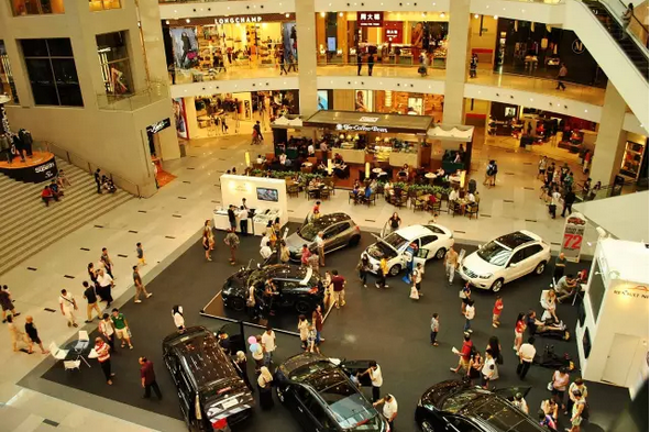 近幾年,在不少大型購物中心的中庭和主要通道,時常會出現許多豪車的展示。這其實是種雙贏的舉措。