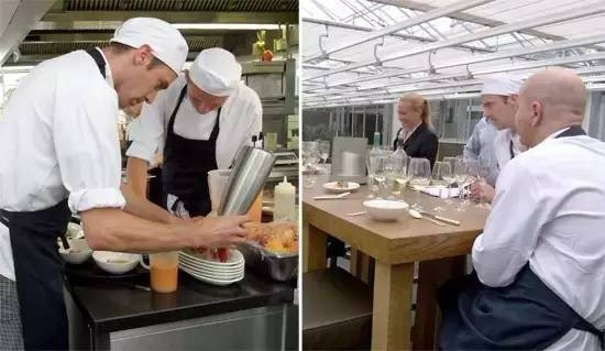 Restaurant De Kas 設有獨立包間,提供長桌給有商務需求的顧客。只要多花一些錢預訂,就能在廚房里的貴賓桌用餐宴客,親眼目睹大廚制作料理過程。