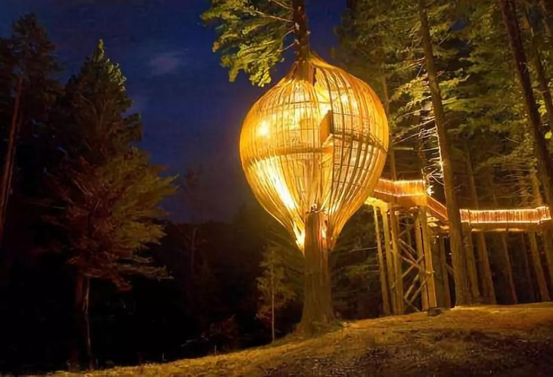 它的外觀像一個即將破繭而出的蝶蛹吸附在樹上,又像童話世界里的森林巨人正在晾曬的洋蔥頭。