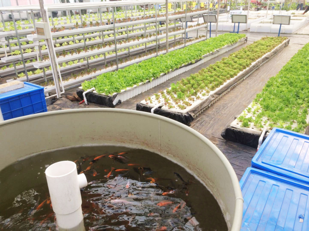 魚菜共生。北京市懷柔區東方尚品農業種植專業合作社采用魚菜共生模式,池塘上面種菜、池塘下養魚,無土栽培的各種蔬菜長勢良好。養魚的水過濾后,變成了自帶有機肥的‘營養液’經過管道供給蔬菜;種菜的水經過養分吸收后,又變成適合養魚的水,這樣形成了一整套小生態系統。