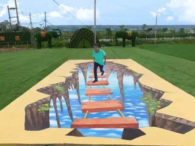 步入園區(qū)最醒目的,就是地面上那幾張驚險、刺激、好玩的3D魔幻立體畫了。可千萬別小瞧了這幾張畫,它卻能給你帶來不一樣的視覺體驗,它會讓你的腎上腺素飛一般的上升,每前進一步或者是后退一步,你都能身臨其境般的在懸崖峭壁上體驗刺激和驚險。