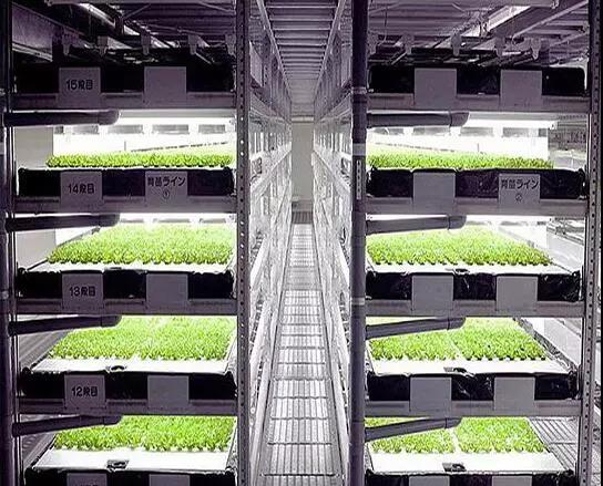 這個具有工業規模的農場,是由日本植物生理學家島村重治不久前創建的。該農場里面裝了17500盞特別設計的LED燈,分布在各有16層的18個種植架上,可模擬白天與黑夜,通過嚴密監控光合作用程序,促使生菜的生長速度比戶外農場快了1.5倍,報廢率也少40%,生產效率提高100倍。