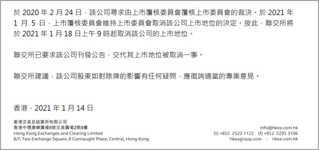 針對港交所有關(guān)公司的退市裁定,匯源果汁董事會稱,公司已盡最大努力及已動用一切可用的資源嘗試滿足復(fù)牌條件,且“對上市覆核委員會的決定表示失望且不同意有關(guān)決定。”