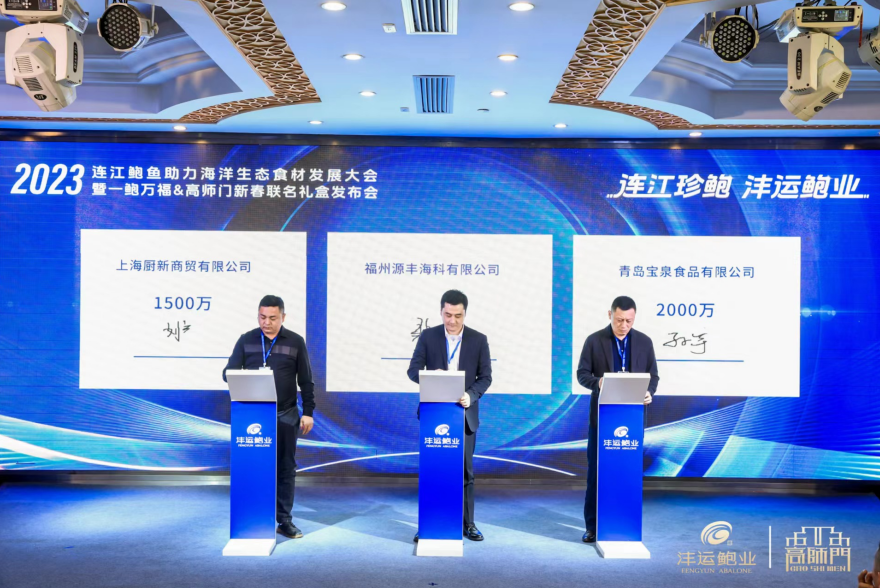 大會(huì)上,主辦方還舉行了兩項(xiàng)授牌儀式及一鮑萬(wàn)福&高師門(mén)新春禮盒發(fā)布啟動(dòng)儀式、戰(zhàn)略簽約儀式、訂貨簽約儀式等多項(xiàng)精彩活動(dòng),本次大會(huì)簽約總金額超1億元。