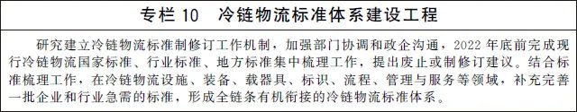 加強冷鏈物流標準制修訂。加強冷鏈基礎通用標準和冷鏈基礎設施、技術裝備、作業流程、信息追溯等重點環節以及冷鏈物流綠色化、智慧化等重點領域標準制修訂,加快填補標準空白。制定一批強制性國家標準,守好冷鏈產品安全底線。加強冷鏈物流推薦性國家標準、行業標準推陳出新,支持地方因地制宜制定符合發展需要的地方標準,鼓勵高起點制定團體標準和企業標準。積極參與冷鏈物流國際標準化活動,推動國內國際標準接軌。