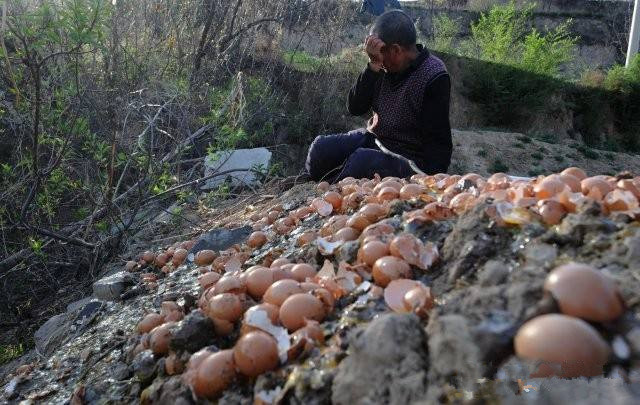 2017年5月,山西呂梁中陽縣金羅鎮韓家山村,70歲的老人張牛生將存放了20多天沒賣出去的雞蛋搬到村口懸崖邊一股腦全倒了下去。