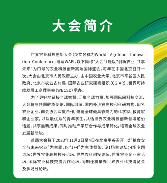 2023年9月18日,聯合國糧農組織總干事屈冬玉回信中國農業大學校長孫其信。信中表示“感謝你邀請我參加定于2023年11月2-4日在中國北京舉行的2023年世界農業科技創新大會并致開幕辭。我很樂意為本次大會開幕式錄制視頻發言,視頻鏈接將適時發送。我謹借此機會預祝此次論壇取得圓滿成功。”